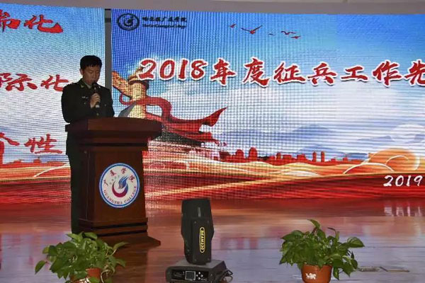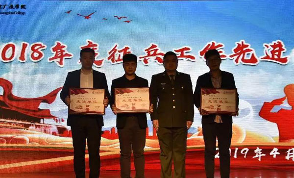 校武装部部长赵云龙代表学校宣读了《关于对2018年度征兵工作先进单位、先进个人予以表彰的决定》。出席大会的领导为获奖单位和先进个人颁发了奖状和荣誉证书。