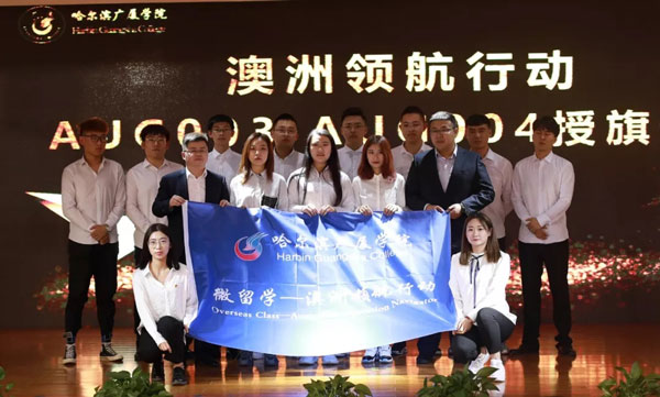 哈尔滨广厦学院本着与国际接轨的原则,大力支持学生出国参加微留学项目。开幕式上,英伦大学堂UKG026团学员进行了经验分享,讲述了在英国学习期间的经历、体会和收获。随后,校领导为即将出行的英伦大学堂UKG025团与澳洲领航行动AUG003、AUG004团举行授旗仪式。