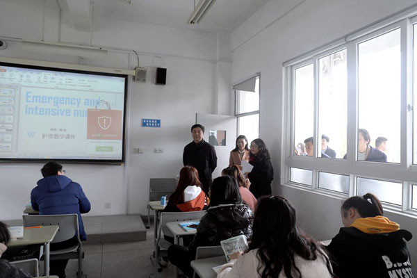 在巡查过程中,校领导深入教室进行现场听课,重点听取了护理学院的新学期工作汇报,内容包括教学设备的使用与维修、开学初教学准备、学生到课和应届毕业生实习安排等情况,并初步探讨新学期专业建设规划,涉及专业调整、对台交流和港澳台合作安排等。学校领导对当天的教学运行情况给予了充分肯定,并针对检查中发现的问题提出了改进意见与建议。校长孙德彪强调,学校将坚持对台交流与港澳台合作、护理学院与爱尔兰的合作办学,进一步深化合作的力度。