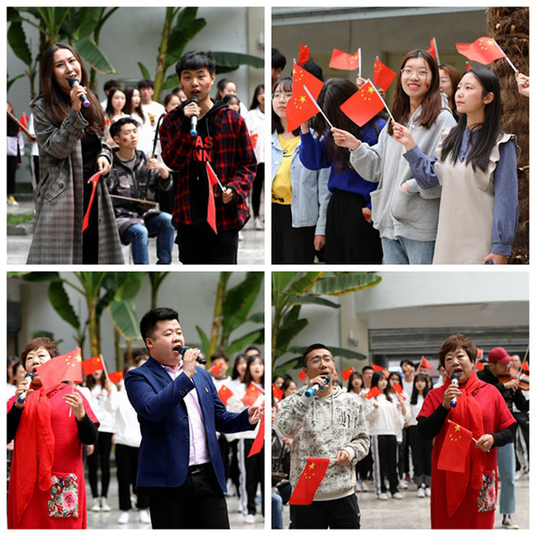 “我和我的祖国,一刻也不能分割,无论我走到哪里,都流出一首赞歌……”。4月10日中午,学校中心广场上,悠扬的歌声回荡在空中,“我和我的祖国”主题文艺快闪活动激情上演,师生们用热情激昂的歌声、优雅动人的演奏、青春洋溢的舞蹈,抒发对祖国的热爱,为祖国70华诞献上最真切的祝福。通过此次培训和演练,增强了大家的防火安全意识,丰富了发生火灾时的灭火实战经验。