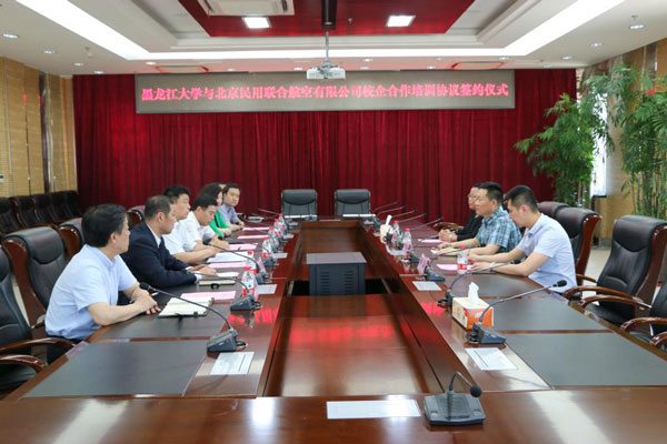 签约仪式上,与会双方共同观看了黑龙江大学与北京民用联合航空有限公司的宣传片,详细了解了黑龙江大学、北京民用联合航空有限公司的发展历程、基本情况和战略目标。