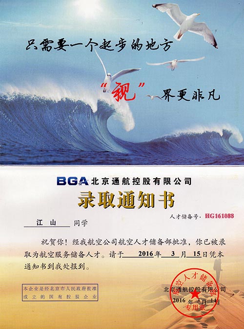 恭喜江山同学被我校录取【东海学院航空】