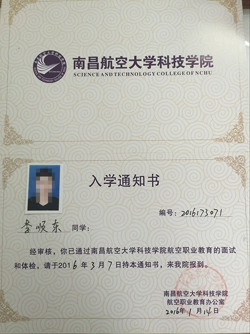 恭喜李顺东同学被我校录取【南航航空】
