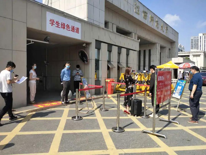 为进一步做好学生返校各项准备工作,切实提高学院学生返校疫情防控和各部门面对突发疫情的应急处理能力,保障师生返校各项工作安全有序开展。江西师范大学青山湖校区于2020年5月26日下午在南门开展了复学疫情防控演练,学校教职员工参加演练,确定学校各个部门,各个环节通过演练熟悉应急预案及操作流程。
