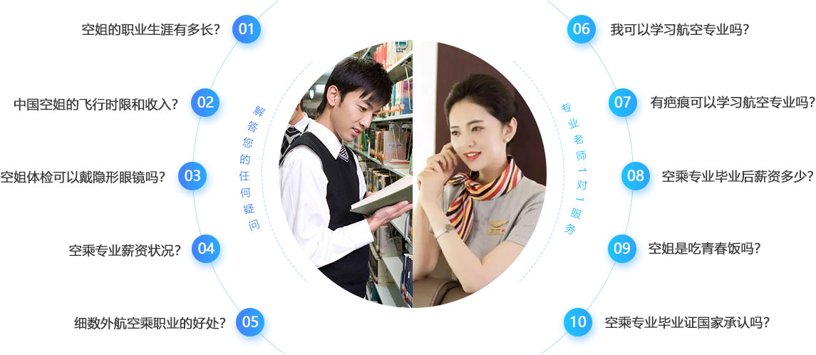 专业设置:空姐/空哥,高铁乘务,地勤服务