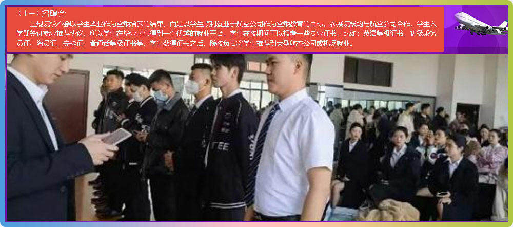 学校优势:校企合作,实行一体化办学,为学生提供全方位的航空职业培训服务
